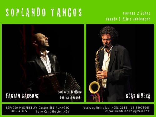 Viernes 02/11/12 y sábado 03/11/12 : Soplando tangos. Fabián Carbone - cantante invitada: Cecilia Bonardi // Blas Rivera.